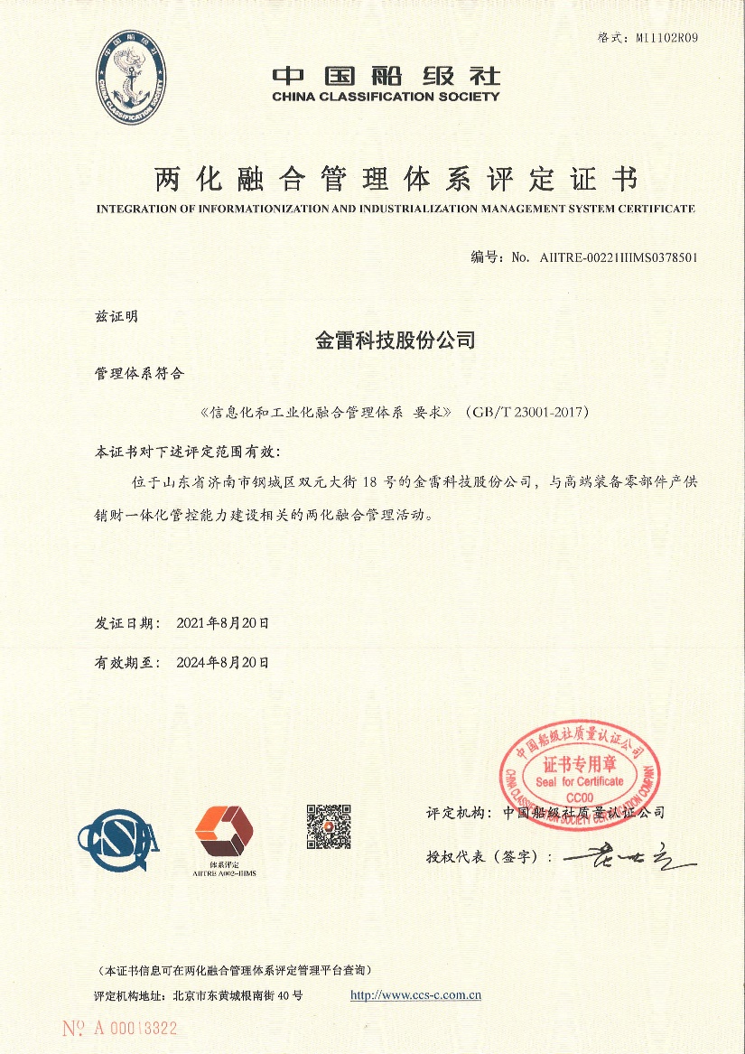 8月20日,安博电子官方网站通过工信部最终审核,荣获中国船级社颁发的“两化融合管理体系评定证书”。这标志着公司信息化建设迈上了一个新的台阶,在推进信息化和工业化融合方面取得了突破性的成果,并获得了国家专业机构的认可。